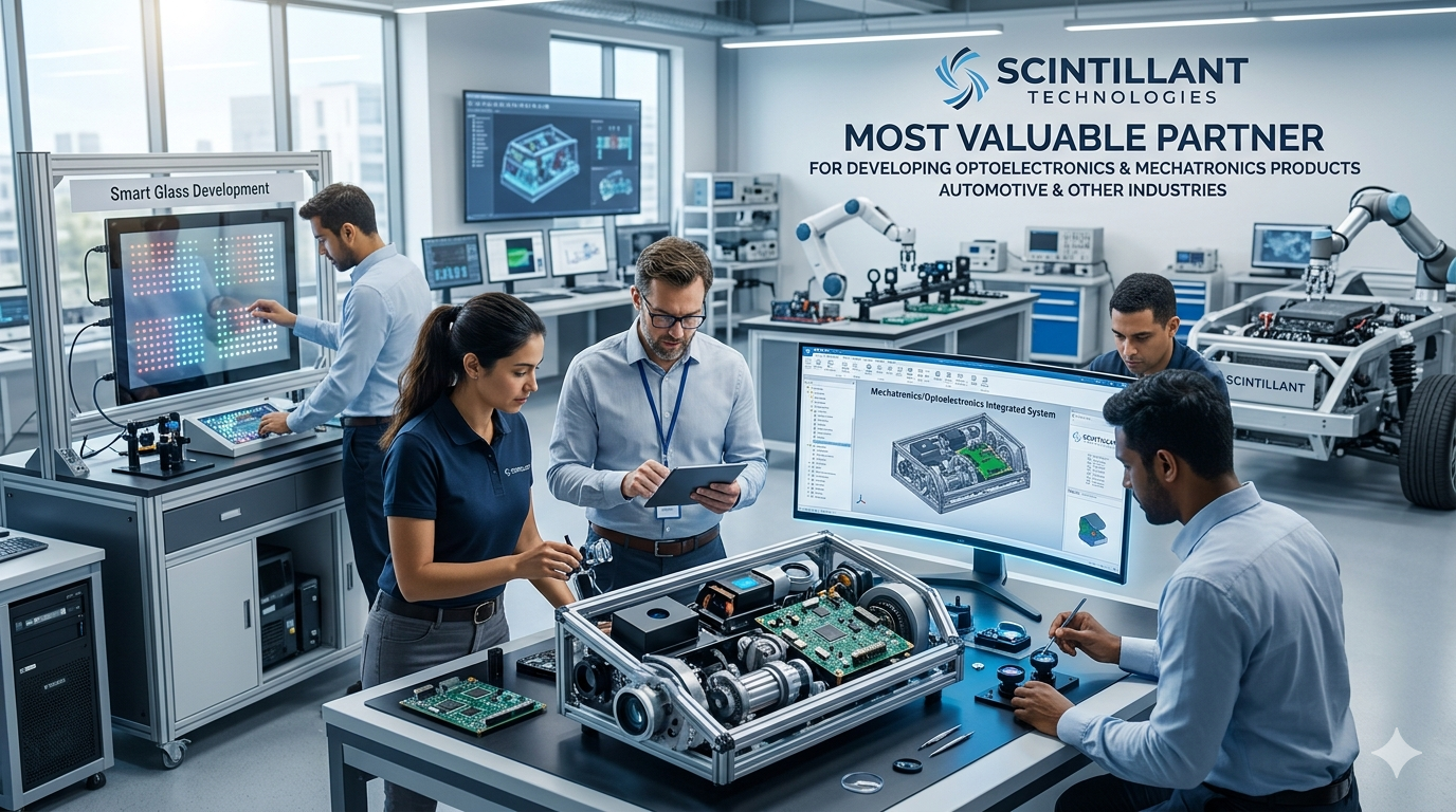 Scintillant Technologies is most valuable partner for developing optoelectronics and Mechatronics products for automotive and other industries. We are highly experienced team in various areas like optoelectronics design, mechatronics design, smart glass. We work in following services and product areas.